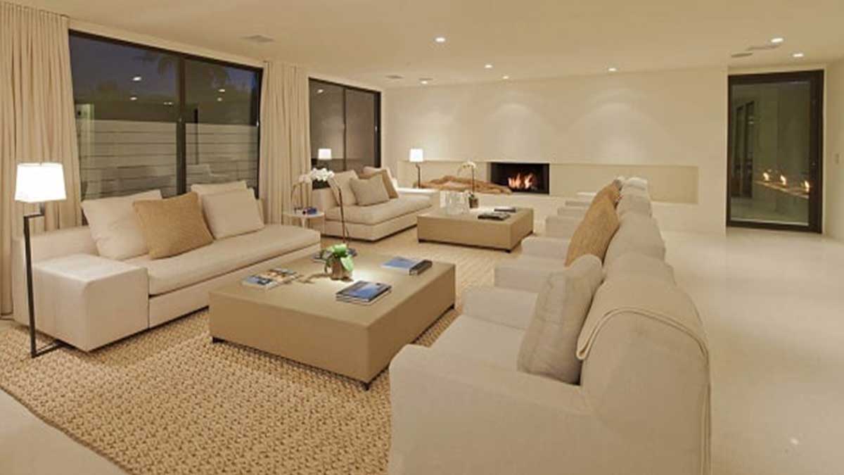 وضع أريكة كبيرة بها تكفي قرابة أربعة أشخاص، وأريكة متوسطة تكفي لشخصين أو ثلاثة أشخاص، من أجل أن تكون غرفة الجلوس مكتملة، مع إضافة منضدة للقهوة، بحيث تكون في منتصف الغرفة، فيما تكون الأرائك حولها. إضافة الموارد الخزفية، أو الشموع، أو التماثيل، أو إطارات الصور، أو المصابيح من أجل الحصول على إضاءة إضافية.