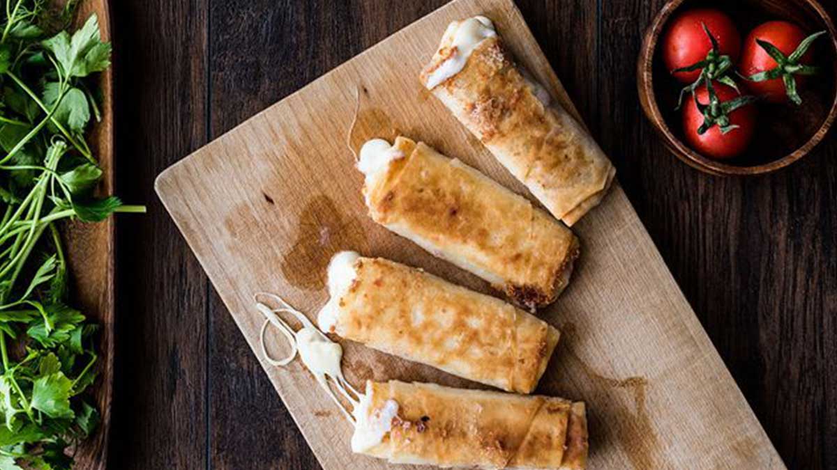 - نبسط كلّ قطعة كريب وندهنها بنصف مثلث جبن.